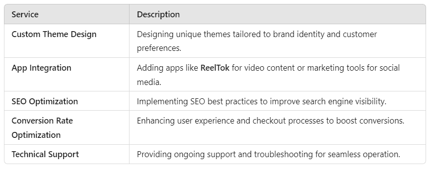 Here’s a breakdown of some key services offered by Shopify experts: