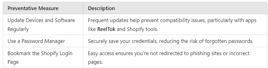 And remember, if you’re incorporating tools like ReelTok to enhance Shoppable videos or need further assistance, Shopify’s support team is there to help. By following these steps, you can prevent future login problems and maintain a seamless experience on Shopify.
