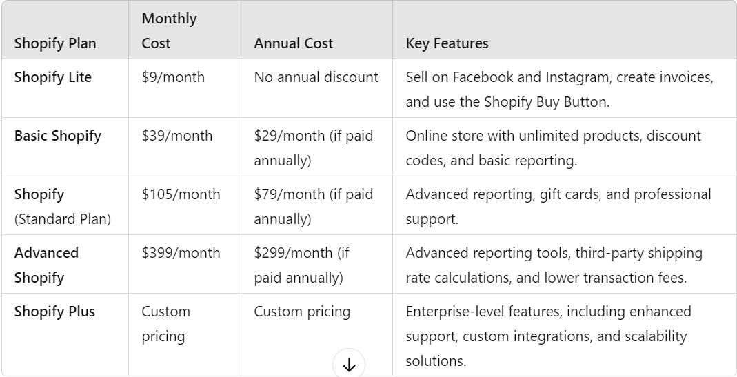 Custom Pricing: Contact Shopify for personalized pricing based on business requirements.