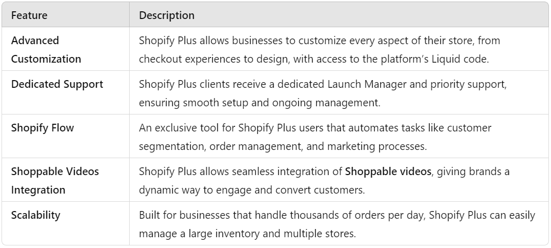 Key Features of Shopify Plus: