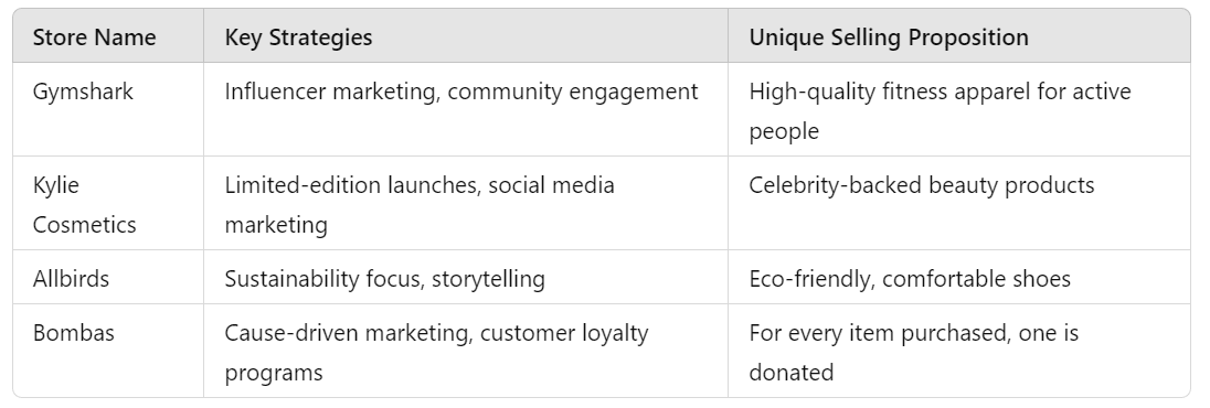 Strong Brand Identity: Successful stores have a clear and compelling brand story, consistent messaging, and a unique selling proposition (USP) that resonates with their target audience.